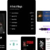 - Tryby prezentacji: pojedynczy utwór, lista odtwarzania, album, karuzela lub siatka z kartami